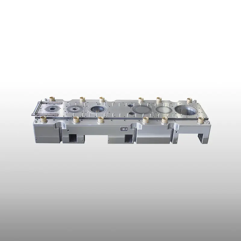 Mold base material: Upper and lower mold seats P20, middle unloading seat P20, the second and fourth levels are made on the same set of molds and are interchangeable during production. The shaft hole can be used for three interchangeable pumping plates.