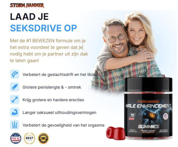 In de moderne wereld is een gezond en bevredigend seksleven essentieel voor zelfvertrouwen, geluk en relaties. Veel mannen in Nederland ervaren problemen zoals een lage libido, minder uithoudingsvermogen en zwakkere erecties door stress, een ongezonde levensstijl of veroudering. Als jij op zoek bent naar een natuurlijke, veilige en effectieve manier om je seksuele kracht te herwinnen, dan zijn Storm Hammer Gummies precies wat je nodig hebt.