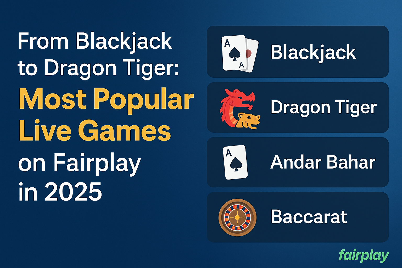 From Blackjack to Dragon Tiger: Most Popular Live Games on Fairplay in 2025