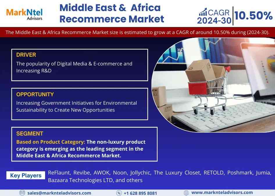 MarkNtel Advisors, a leading market research and consulting firm, has announced the release of its latest study titled Middle East & Africa Recommerce Market Research Report: Forecast (2024-2030). This report provides a detailed assessment of the Middle East & Africa Recommerce Market, covering its evolving dynamics, emerging trends, key growth drivers, major challenges, and competitive landscape.