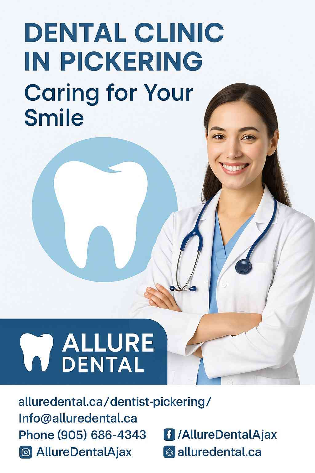 Allure Dental is a leading Dental Clinic in Pickering, offering personalized, family-friendly care designed to keep your smile healthy and confident. Our experienced team provides a full range of services, including comprehensive dental check-ups in Pickering, professional teeth cleaning, cosmetic dentistry treatments, restorative dental solutions, and emergency dental care near Pickering. Using modern technology and gentle techniques, we ensure a comfortable experience for patients of all ages.
