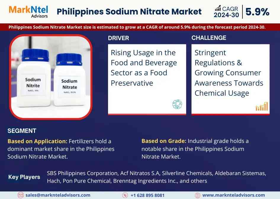 MarkNtel Advisors, a leading market research and consulting firm, has announced the release of its latest study titled Philippines Sodium Nitrate Market Research Report Forecast (2024-2030). This report provides a detailed assessment of the Philippines Sodium Nitrate Market, covering its evolving dynamics, emerging trends, key growth drivers, major challenges, and competitive landscape.