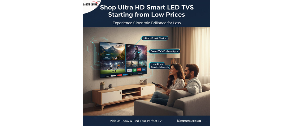Buy the best Ultra HD Smart LED TVs at Lahore Centre. Explore top models from Samsung, LG, TCL, and Haier with official warranties and easy installments.