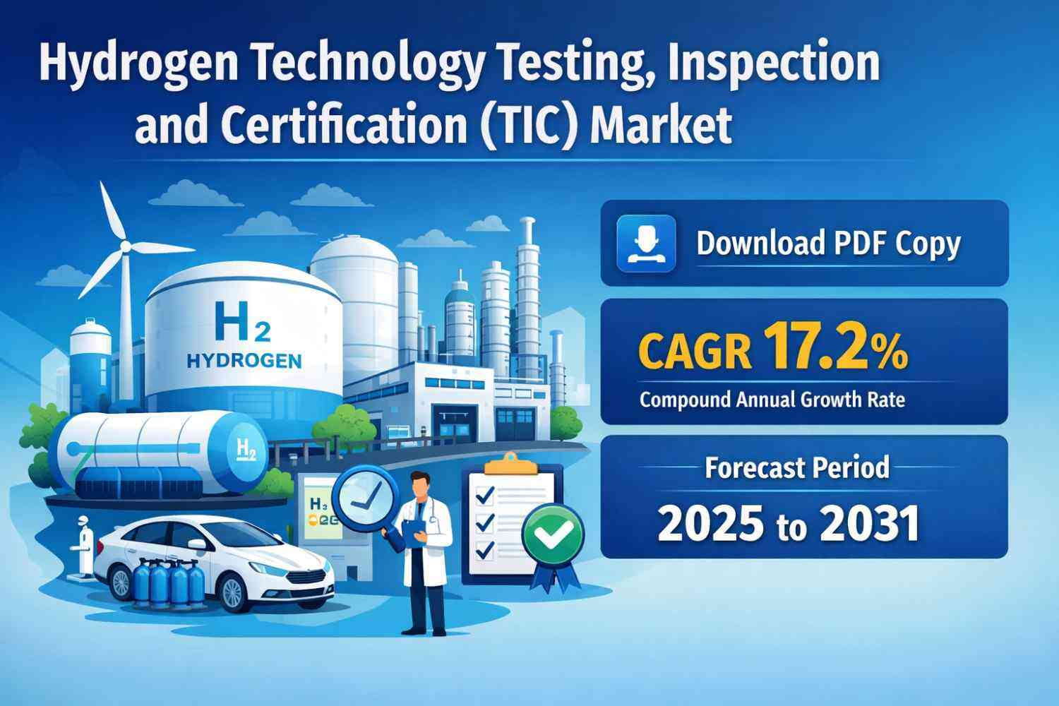 The Global Hydrogen Technology Testing, Inspection and Certification (TIC) Market is positioned for significant expansion through 2031 as the hydrogen economy accelerates worldwide. According to an industry forecast by The Insight Partners, this market is expected to register a compound annual growth rate (CAGR) of approximately 17.2% between 2025 and 2031, driven by rising deployment of hydrogen solutions across energy, transportation, industrial and mobility sectors.