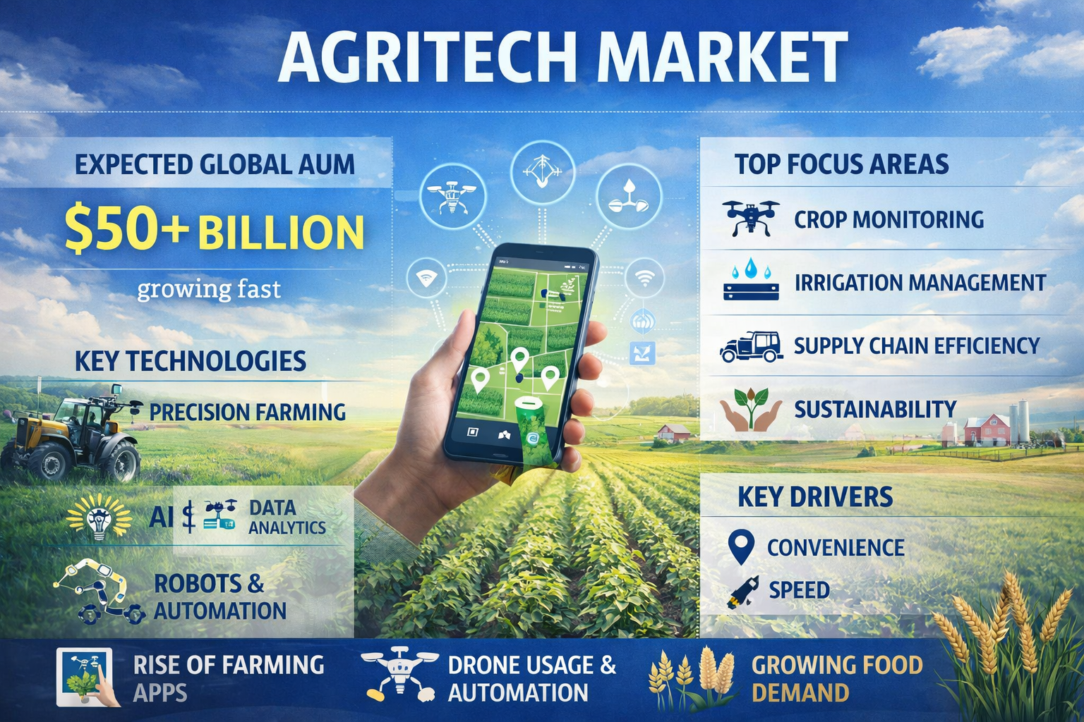 The agritech market’s growth potential is amplified by the increasing need for data‑driven decision‑making, sustainability imperatives, and the advent of smart farming tools that bring precision, productivity, and profitability to farms of all scales. Advanced analytics, robotics, and integrated digital platforms are expected to gain traction, creating new revenue streams for innovators and early adopters.