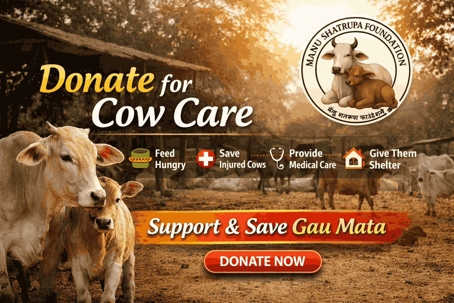 Manu Shatrupa Foundation was established with the sole purpose of rescuing injured and abandoned cows and giving them a dignified life.