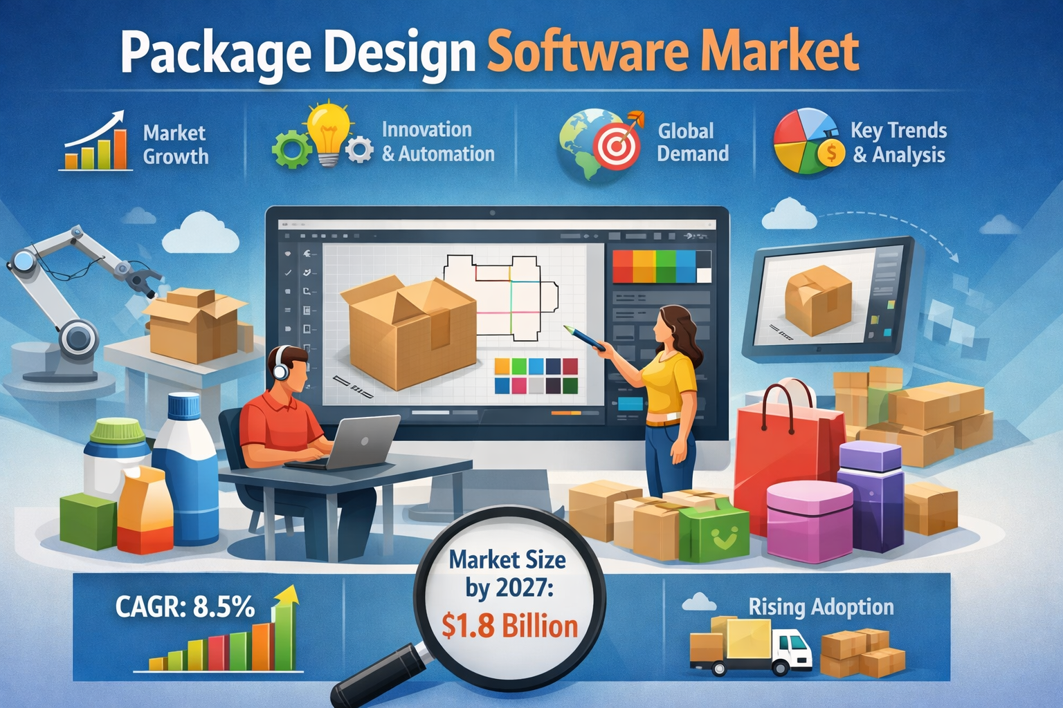 The global Package Design Software Market Key Drivers is witnessing strong momentum as businesses across industries increasingly adopt digital tools to enhance packaging innovation, improve operational efficiency, and strengthen brand positioning. According to insights from The Insight Partners, the market is expected to experience consistent growth from 2026 to 2034, supported by evolving industry requirements and continuous technological advancements.
