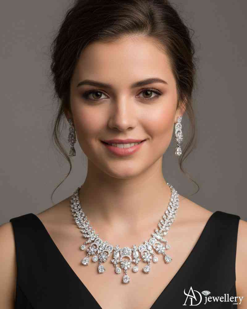 Festivals are a time to celebrate traditions and dress in beautiful ethnic outfits. A stylish ADjewellery Necklace Set can add charm and elegance to your festive look. Whether it’s Diwali, Navratri, Eid, or family gatherings, an American Diamond Necklace can enhance your overall appearance.