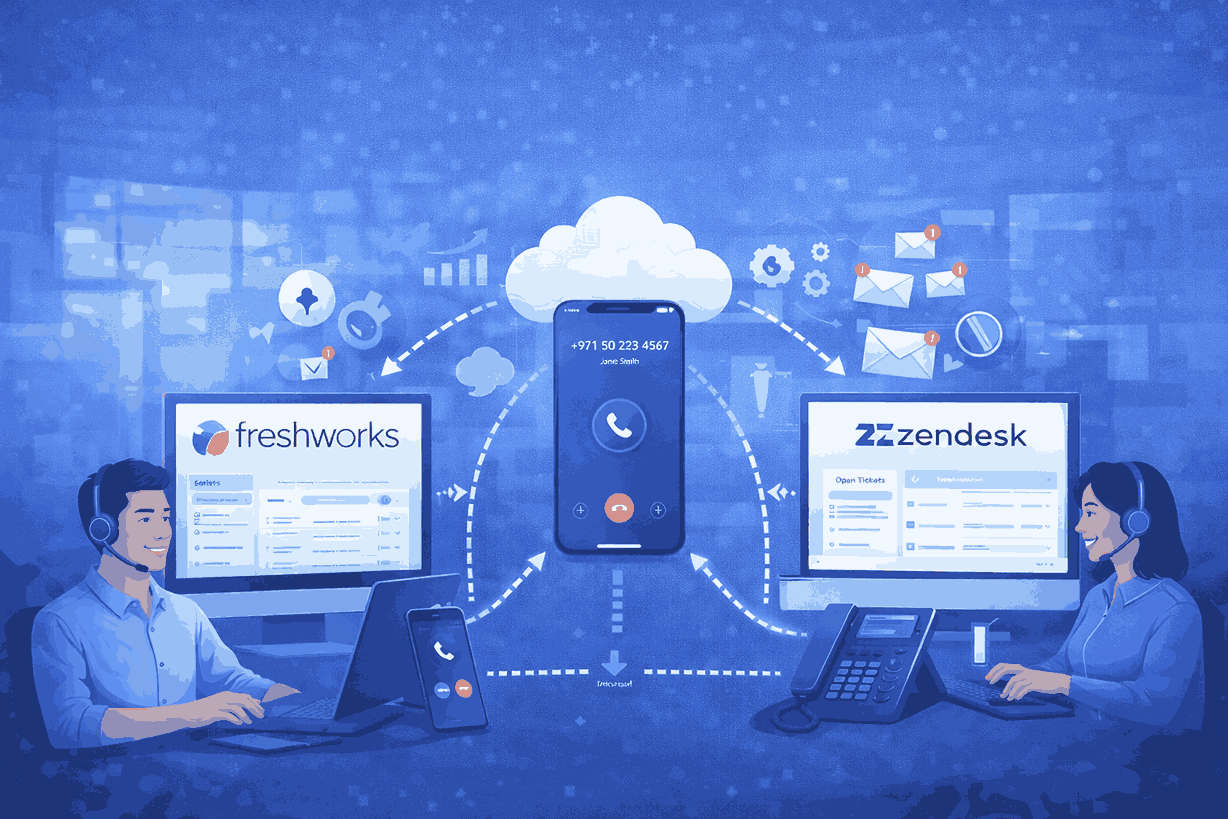 Cloud calling becomes much more useful when it is connected to the systems teams already rely on every day, including CRM platforms and support tools such as Zoho CRM, Freshworks, Salesforce, Microsoft Dynamics, Bitrix24, Zendesk, and Freshdesk.