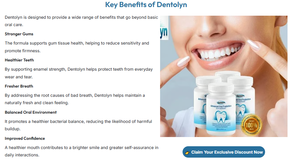 Dentolyn Capsules, Official Dentolyn Oral Health ... – Daily Oral Care SupplementSustaining proper oral care is crucial not only for a radiant grin but also for general well-being and self-assurance. Although brushing and flossing are essential daily practices, they may not consistently provide complete protection for your teeth and gums against internal imbalances and detrimental bacteria. This is where Dentolyn becomes relevant. Crafted as a practical oral...0 Commenti 0 condivisioni 571 Views 0 Anteprima