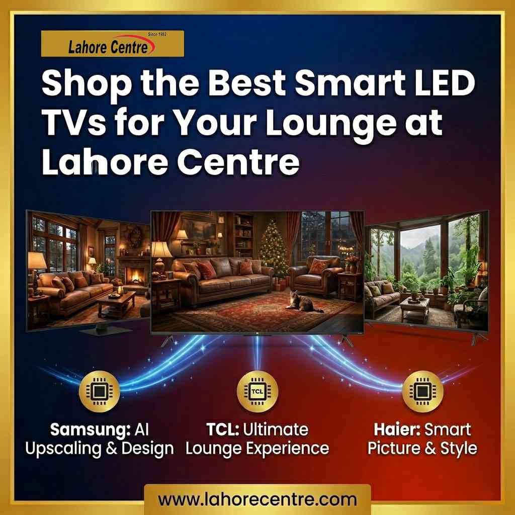 Buy the best Smart LED TVs for your lounge at Lahore Centre. Get expert advice, genuine warranties, and the top brands like Samsung, TCL, and LG.