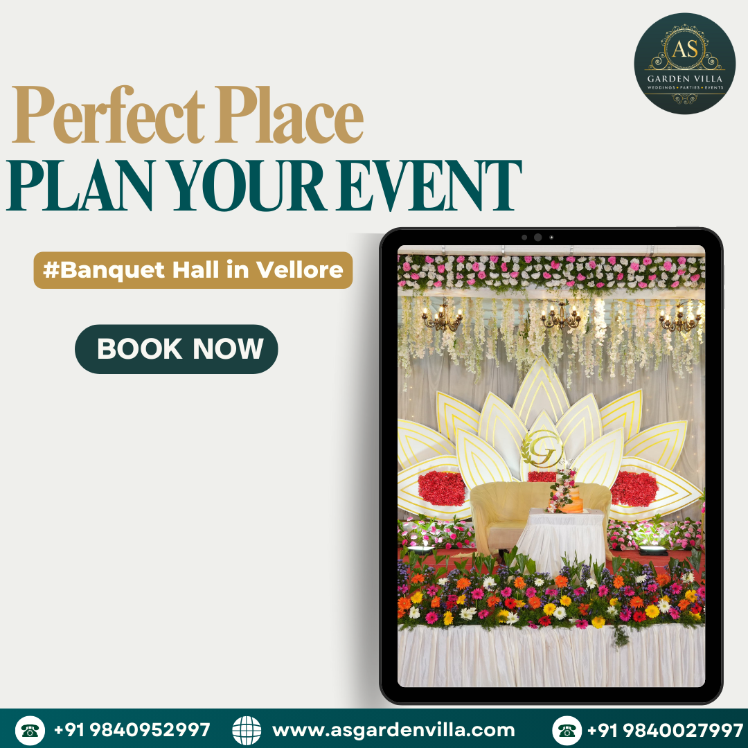 AS Garden Villa offers a luxury banquet hall in Vellore with elegant interiors and spacious seating, perfect for weddings, receptions, and corporate events. Professional service and customized arrangements ensure a memorable celebration.Kindly visit our website https://asgardenvilla.com/ or contact +91 9840952997 / +91 9840027997 for bookings.