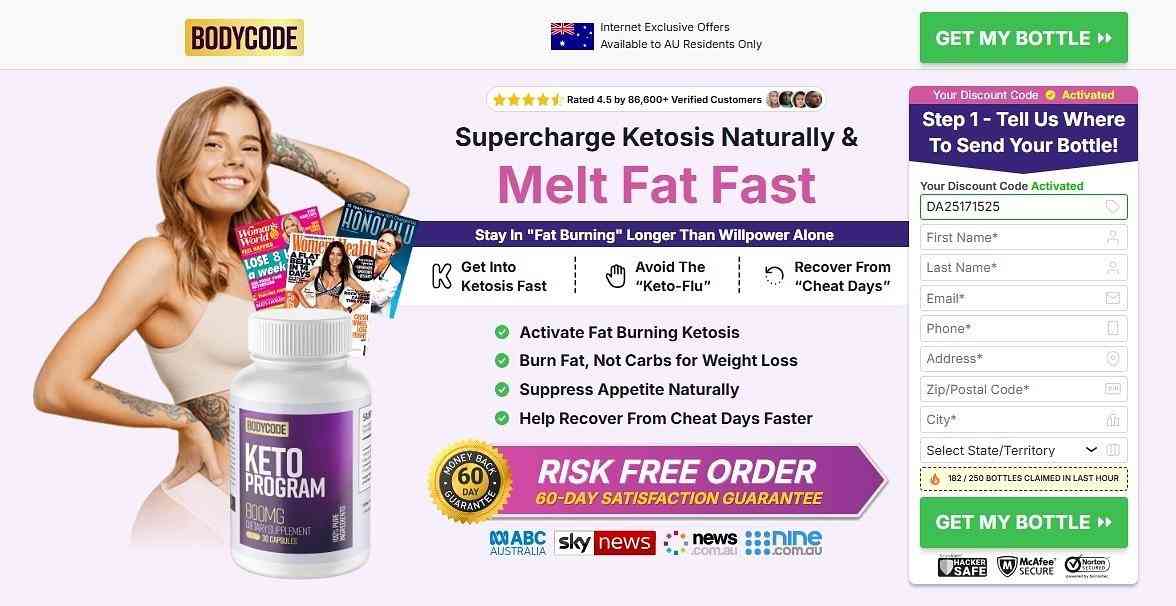 The groundbreaking BodyCode Keto might be precisely what you require to ignite your path toward a more vibrant, sculpted physique. Formulated to facilitate ketosis, elevate energy levels, and optimize fat oxidation, BodyCode is a holistic supplement designed for individuals dedicated to pursuing enduring weight reduction. BodyCode Keto Capsules 800mg is a meticulously designed dietary aid that assists your body in achieving and sustaining a state of ketosis—a natural metabolic condition wherein your body utilizes fat for energy instead of carbohydrates. ➽➽ (Site web officiel) → https://bodycodeketo-au.com/